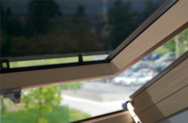 Vnější markýza, instalována společně s vnitřním doplňkem na jednom střešním okně FAKRO, tvoří kompletní příslušenství, které zajišťuje nejvyšší komfort bydlení v podkroví, protože chrání proti teplu, zastiňuje místnost a navíc zdobí interiér.
