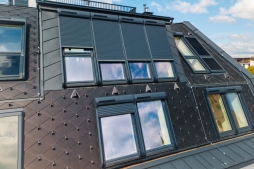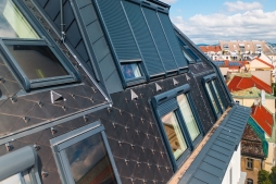 V kombinaci s doplňkovými svislými prvky FXU a lemováním KDV-X vzniklo řešení, které technicky odpovídá současným nárokům a zároveň nenarušuje vizuální kontinuitu historické střechy.